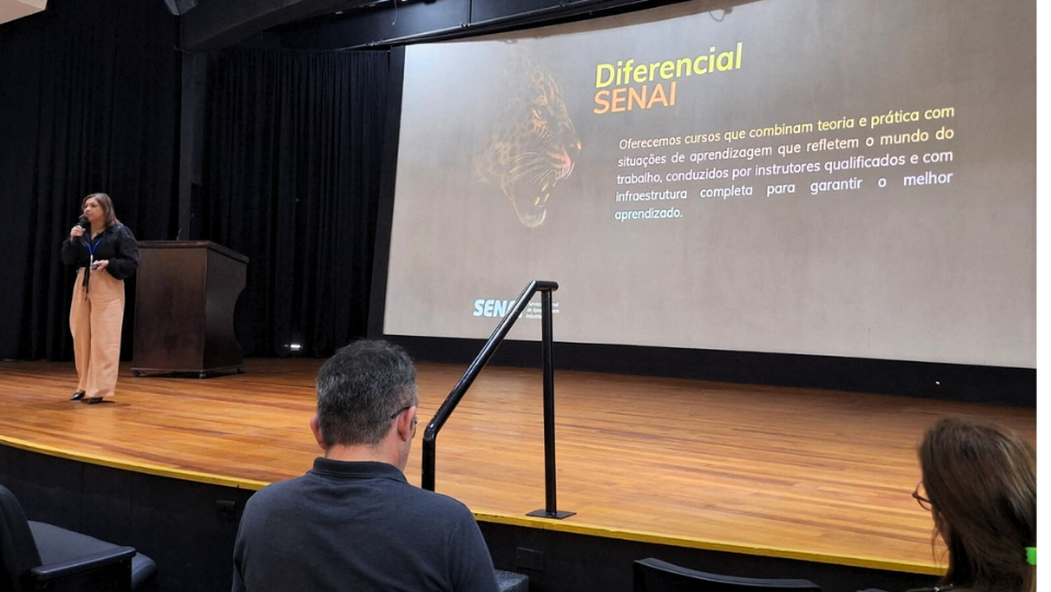 O SENAI Amapá participou da reunião promovida pela Escola SESI Visconde de Mauá para apresentar aos pais e responsáveis os cursos ofertados nos itinerários formativos do Ensino Médio. O encontro aconteceu no Teatro do SESI e reuniu famílias de alunos da 1ª série, que em 2026 farão a escolha do itinerário a ser feito na 2ª série.